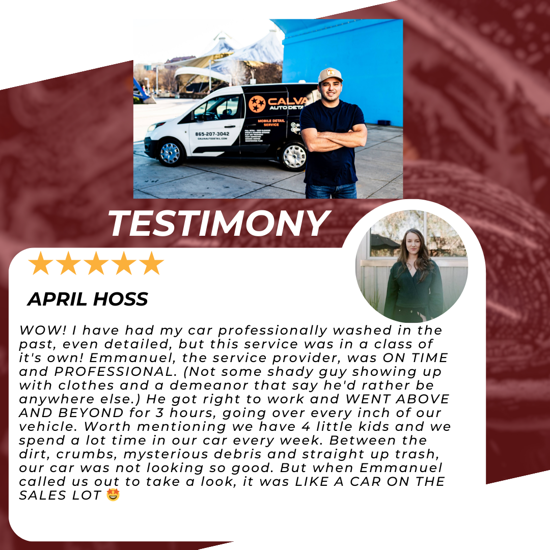 I run a landscaping company. The vehicle that was serviced is my work truck. You can imagine the condition it was in. Emmanuel did an outstanding job, and it looks showroom new. Thank you, Calva Auto Detail!